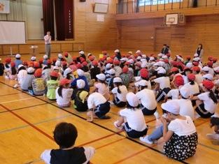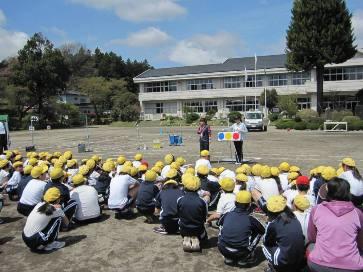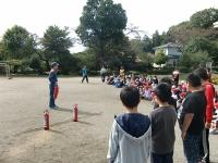 10月27日(木)に避難訓練を行いました。今回も事前に児童には実施日を伝えずに実施しました。休み時間中に地震が発生し、その後火災になるという想定でした。児童は緊急放送の指示をよく聞き、速やかに避難行動をとることができました。避難した後は、消防署員からの話を聞いたり、模擬消火器を使っての消火訓練を行なったりしました。私語が多かったのが今後の課題ですが、前回より避難時間は短縮されました。