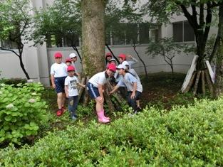 晴天に恵まれ、8名のボランティアの保護者の方、田植えの先生の福田さんのご協力のもと、無事に田植えをすることができました。