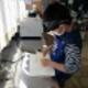 最初は、針を持つだけでたどたどしい様子だった5年生。