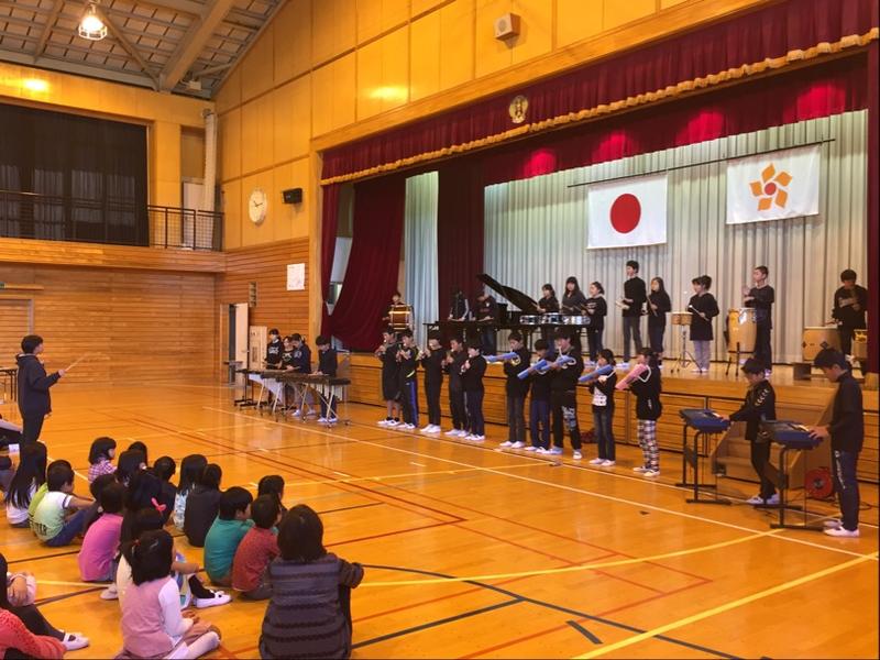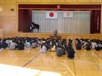 その後は、体育館で家庭教育学級の一環で、日光市出身の大嶋浩美先生、大嶋早苗先生をお呼びして、コンサートを鑑賞しました。聴いたことのある曲をピアノとバイオリンできれいに奏でてもらいました。また、打楽器を使っての合奏もみんなで楽しみました。