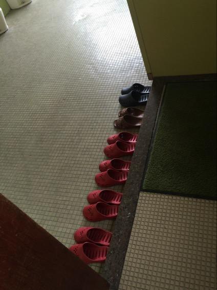スリッパは、次の人が履きやすいように、そろえるよう話しています。