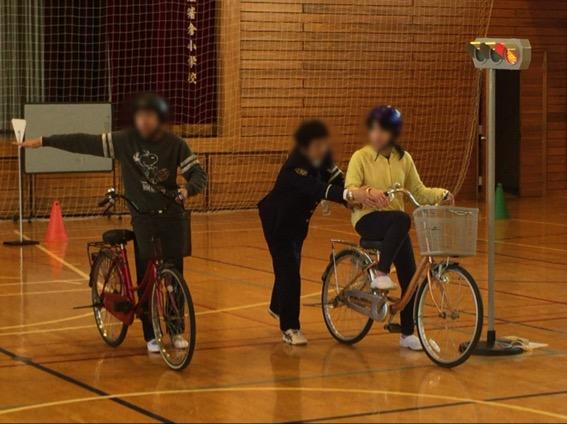 自転車の点検の仕方や、大きな交差点での二段階右折、停止と発進の仕方、路上駐車がある時の走行の仕方、踏切の渡り方を学習しました。