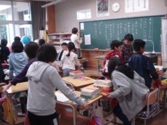 5・6年生は大出先生。「地球のこどもたちへ」「ズッコケ三人組」「耳の聞こえない子がわたります」「なぜ、学校にいくのか」