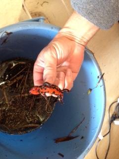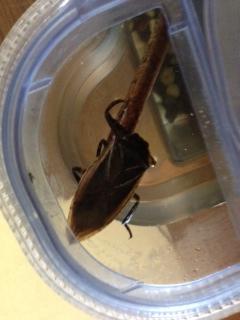 22日の朝、体育館の窓にノコギリクワガタがいました。