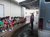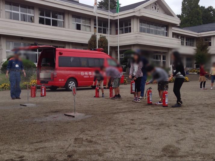 避難した後は、消化器の使い方について消防署の方に教わりました。