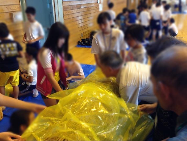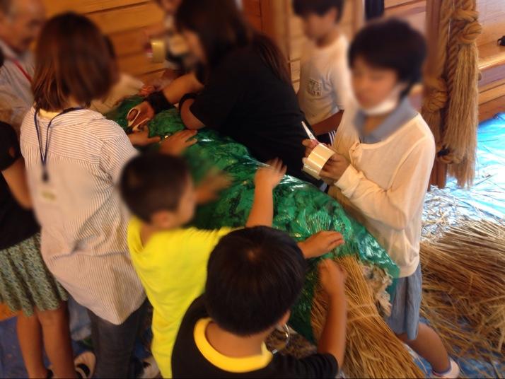 9月5日、地域の方にお手伝いいただいて、かかし作りをしました。
