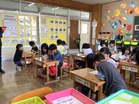 今日は2年生と一緒にグループを組み、学校探検を行う際のルール確認をしました。「ふざけない」「走らないようにする」など、様々な意見が挙がり、全員が真剣に取り組んでいました。