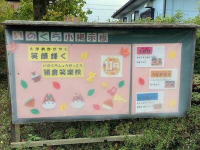 校庭の木々もすっかり秋色になってきました。とてもきれいです。外の掲示板も、11月仕様になりました。