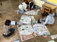 真っ白な凧に絵を描き、個性豊かな凧が完成しました。