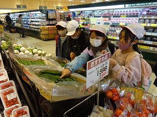 ①スーパーマーケットの工夫と、品物の産地を知ること ②シクラメンの育て方を知ること、をめあてに社会科見学を行いました。