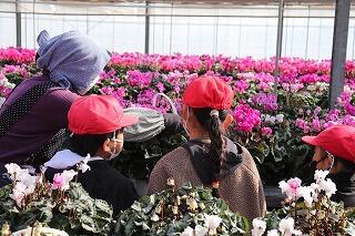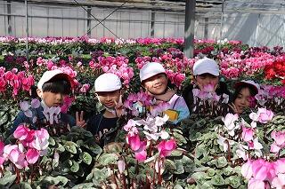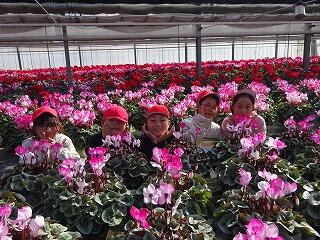 一面色とりどりのシクラメンに感動する子供たちでしたキラキラ