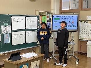 12月2日(火)の学級活動の時間に、本校の栄養教諭を講師に迎えて「朝ごはんの大切さを知ろう」という学習を行いました。まず、自分自身の朝食を振り返り、〇✕クイズを通して、朝ごはんが体にどのような働きをもたらすのかを楽しく学びました。