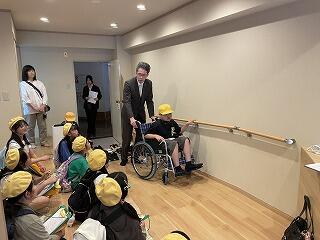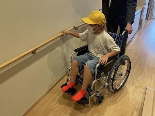 その後、上り坂や下り坂、マットの上の走行では友達に車いすを押してもらい、反対に自分が押す側にも挑戦しました。「押してもらうと安心する」「押すときは力だけでなく相手を気づかうことが大切」など、子どもたちはそれぞれの立場から多くの気づきを得たようです。