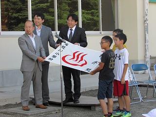 続いて聖火台に点火。本校職員が行いました。