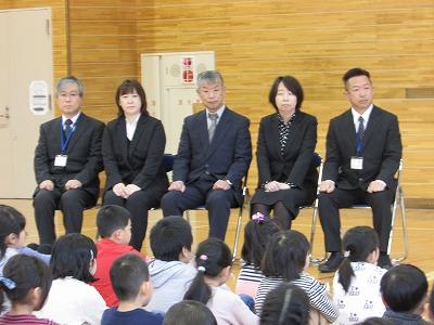 新しく着任された先生方を迎えて、新任式が実施されました。児童代表がお迎えの言葉を立派に