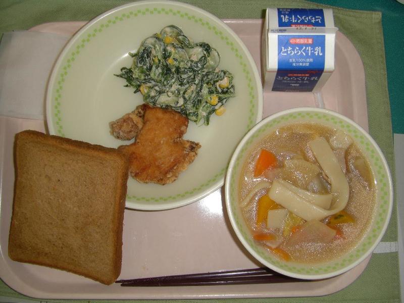 ご飯、牛乳、シシャモフライ、五目きんぴら、けんちん汁