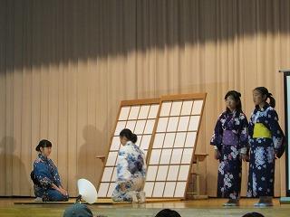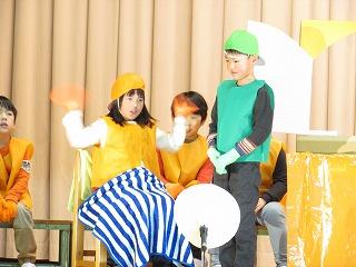 続いて登場したのが3年生です。「三年とうげ」の劇を行いました。ステージに美しい秋の峠道のセットを作ったり、着物風の衣装をそろえたりとても凝った演出でした。内容も素晴らしく、歌あり笑いありのとても素敵な、3年生らしい劇でした。