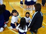 体育の授業で跳び箱を学習しています。本日は跳び箱指導のボランティアとして、藤原消防署の柴田様と沼尾様にお世話になりました。2年生の授業では、開脚跳びの模範を示してくださり、跳び箱についた両手を使い、体を前に押し出すようにするという助言もいただきました。