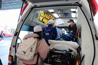 消防署では、教科書で学んだ通信司令室や仮眠室を実際に見せていただいたり、救急車の中はどうなっているのかを説明していただいたりしました。