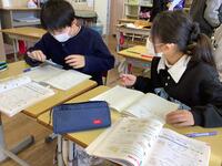 教科書の問題を解いたら、答えを合わせるだけでなく、自分の考えについて話し合いました。