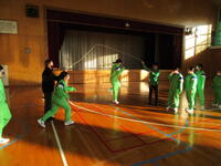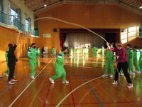 11月19日(水)わかくさタイムの時間に、保健給食委員主催の全校集会を行いました。今回は、運動不足解消のための大縄8の字跳びです。運動会の赤白に分かれて、5分間練習、5分間試合で跳んだ合計回数を競いました。今回は、白組の勝利でした。生徒みんな声を出し合って、楽しそうに運動することができました。