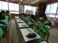 12月2日(火)5校時、1・2年生合同音楽として「リコーダー講習会」を行いました。講師の先生が、大小様々なリコーダ-を紹介・演奏してくださったり、リコーダー奏法について指導してくださったりするなど、生徒にとって身近な楽器であるリコーダーの魅力を再発見できる素晴らしい講習会でした。