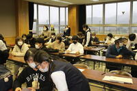 市役所健康課の清水様を講師としてお招きし、アドバイスをいただきながら、1日の献立作りを行いました。生徒たちは献立作りに大変苦戦し、毎日食事を作る保護者の方々の大変さを実感したと思います。最後には、生徒全員栄養バランスの取れた献立を完成することができました。