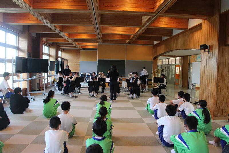 9月13日(水)に、今週末に行われる地区新人大会に向けての選手壮行会を行いました。ソフトテニス部、バドミントン部からの大会に向けての抱負の発表のあと、恒例の音楽部からの”思いやり”の演奏が披露されました。大会に参加するみなさん、”思いやり作戦(気配り、目配り、心配り)”での健闘を祈っています。