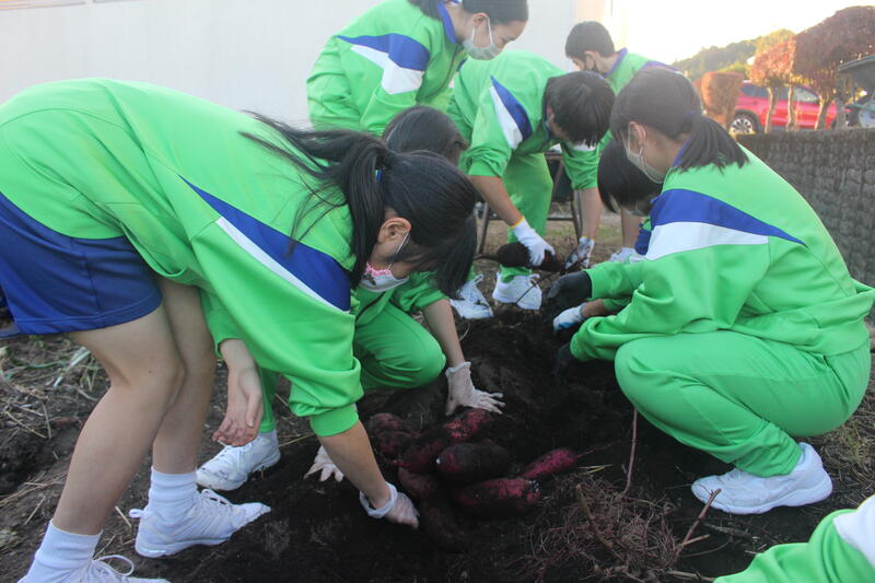 春に植えたさつまいもとさといもを収穫しました。とても大きなさつまいもがたくさん収穫でき、生徒たちも楽し気に活動していました。収穫したさつまいも、さといもは今後の給食で調理していただきます。
