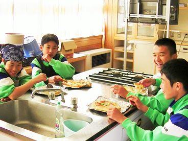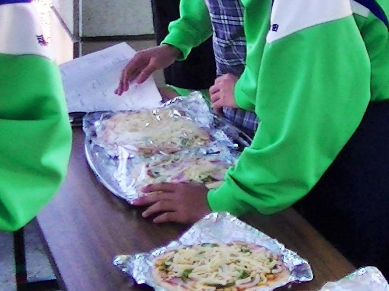 1、2年生が合同で今年度最後のピザづくりをしました。ピザづくりも2~3回目になるため、形やトッピングの具材等にも様々な工夫が見られました。