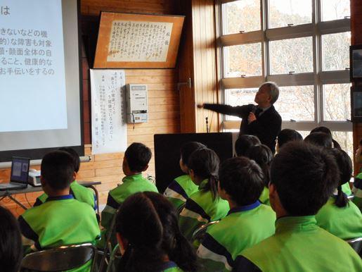 本校歯科医の岩瀬博建先生に来ていただき、3年生対象に「歯と口の健康 ~ブラッシングの実践~」というタイトルで、歯磨き指導をしていただきました。