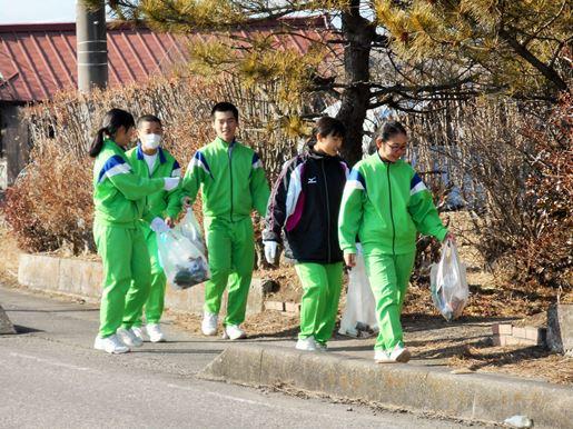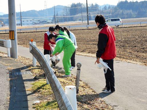 昨年度より県民の日記念行事として、2・3年生合同の下校班ごとに通学路のゴミ拾いを実施しました。学校の近くは徒歩で、遠いところは自転車で行き、道路脇に落ちているゴミを中心に拾いました。