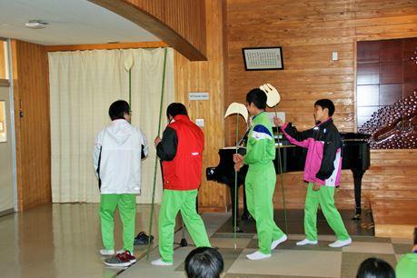 生徒会主催の3年生を送る会が実施されました。〇・✕クイズやジャンケン列車、思い出のDVDの上映、1・2年生からの歌や記念品のプレゼントなどがありました。