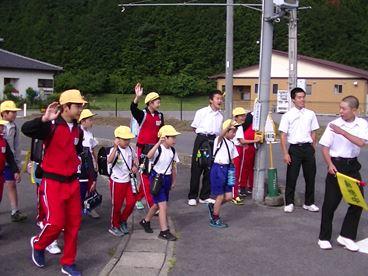 JA近くの交差点で小中合同の朝のあいさつ運動を実施しました。
