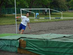 共通男子走り幅跳び 3年 手塚康介君   1年男子1500m 高久歌生人君