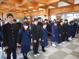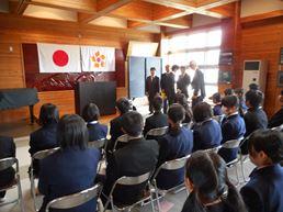 生徒会主催の全校集会が開かれ、学習委員会からベストリーダーの説明、部活動の大会前の壮行会や音楽部の演奏等が行われました。