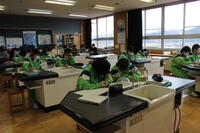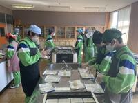 家庭科の授業の一環として、2年生が調理実習を行いました。本校では毎年、地域の健康作り推進員さんが一緒に参加してくださり、健康を意識した調理実習を行っています。