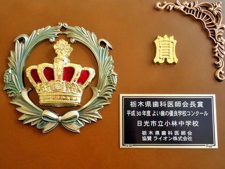 今年度もよい歯の優良学校コンクールで2つの賞をいただきました。一つは昨年もいただいた「栃木県歯科医師会長賞」で、もう一つは「栃木県教育委員会教育長賞」です。