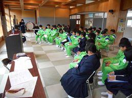 バスで大沢中へ行き、大沢中と合同で情報モラル教室を実施しました。