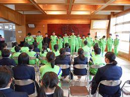 バレーボール部の大会へ向けた決意発表 吹奏楽部の励ましの演奏