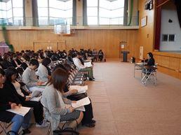 映像も交えながら、情報モラルの話を聞きました。ネット犯罪やトラブルについて真剣に学習することができました。ぜひ、今後の生活に役立ててほしいと思います。