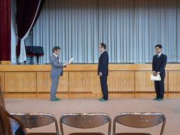 体育館でPTA総会が開かれました。 28年度の小学校、中学校のPTA会長に新会長から