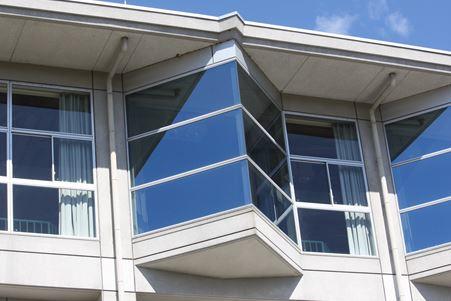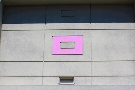 体育館の外壁のピンク色の部分は中学校の「中」を、三角の出っ張りは今市市の「今」をイメージして設計したそうです。