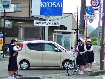 JA近くの交差点で小中合同の朝のあいさつ運動(今年度2回目)を実施しました。