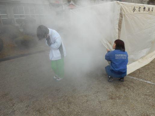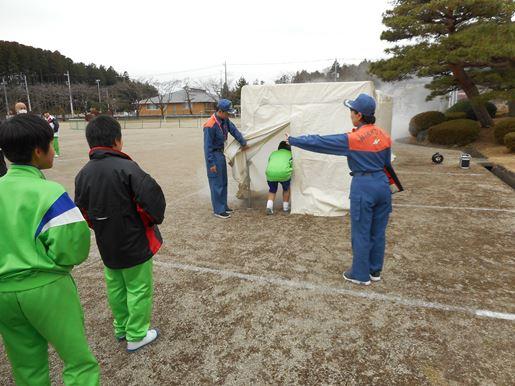 今回の避難訓練は、給食室から火災発生という設定で訓練を実施しました。日光市消防本部の方から、火災発生時の対応について話をしていただき、煙体験も実施しました。