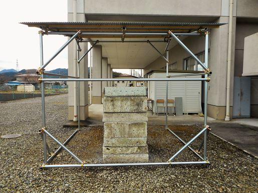 教頭先生の設計のもと、ピザ窯の屋根が完成しました。これで、体育館のピロティーと続いているため、雨が降っても濡れることなくピザ焼きができるようになりました。