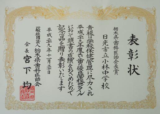 栃木県歯科医師会館でよい歯のコンクール表彰式が行われ、本校が「栃木県歯科医師会長賞」と「栃木県医師会長賞」を受賞しました。