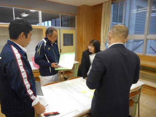 今年度4回目の学力向上応援団の来校があり、今回は1年生の体育の研究授業を実施しました。放課後は、県教委の学力向上応援団の先生と上都賀教育事務所の指導主事の先生を交えながら研修会を実施しました。