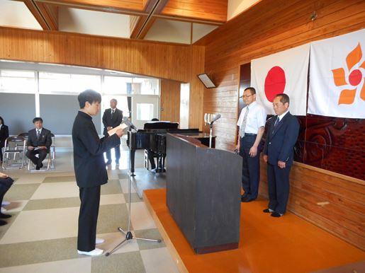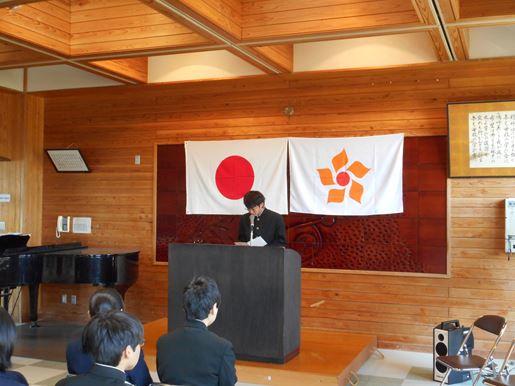 生徒代表「歓迎のことば」 「新年度の抱負」発表(2年)