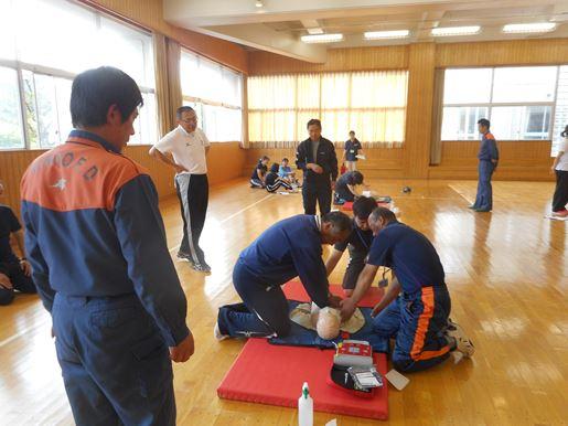 小林小学校の先生方と合同で、日光市消防本部の救急隊員3名の指導の下、「心肺蘇生法」の研修会を実施しました。